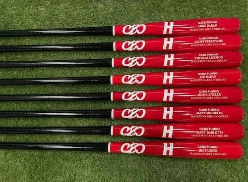 Bat Colors: Black, White. Gray, Natural Royal Blue, Navy Blue, Powder Blue, Green, Red, Light Brown Stain, Dark Brown Stain, Flame Burnt